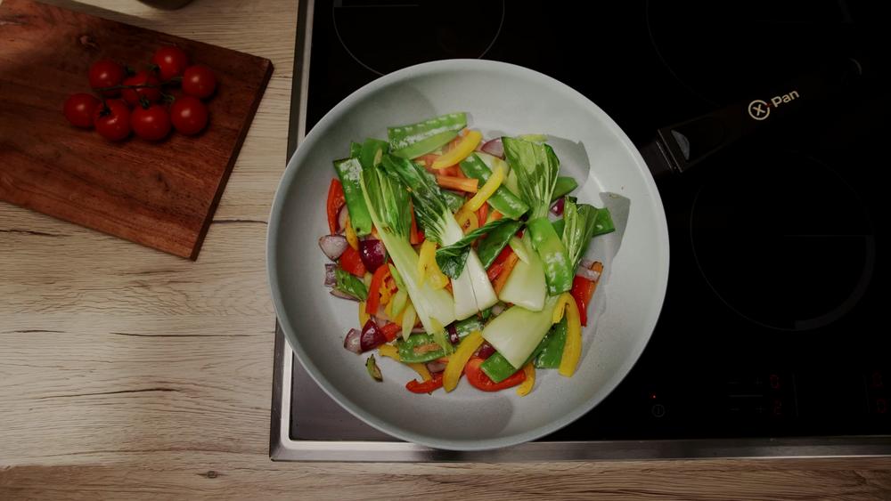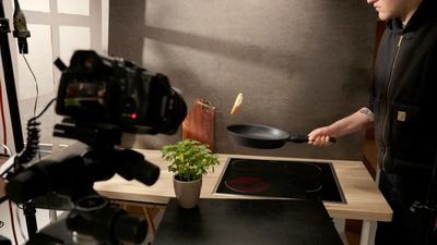Wir haben uns also verschiedene Sequenzen und ein Set überlegt mit, womit wir die verschiedenen Funktionen und Vorteile der Pfannen perfekt darstellen können. Für das Video haben wir unterschiedliche Gerichte, wie Steak, Spiegelei, oder eine Gemüsepfanne zubereitet, um die Vielseitigkeit der Pfannen und ihre verschiedenen Funktionen zu zeigen.