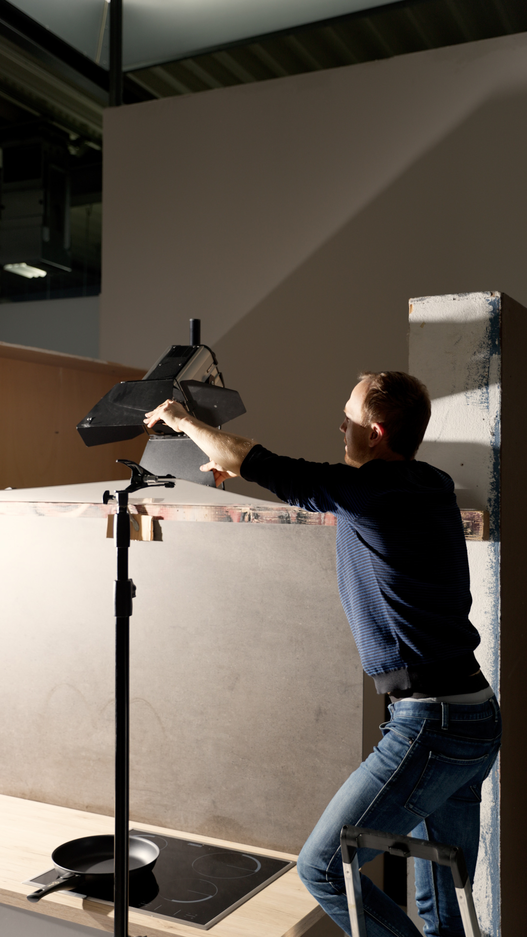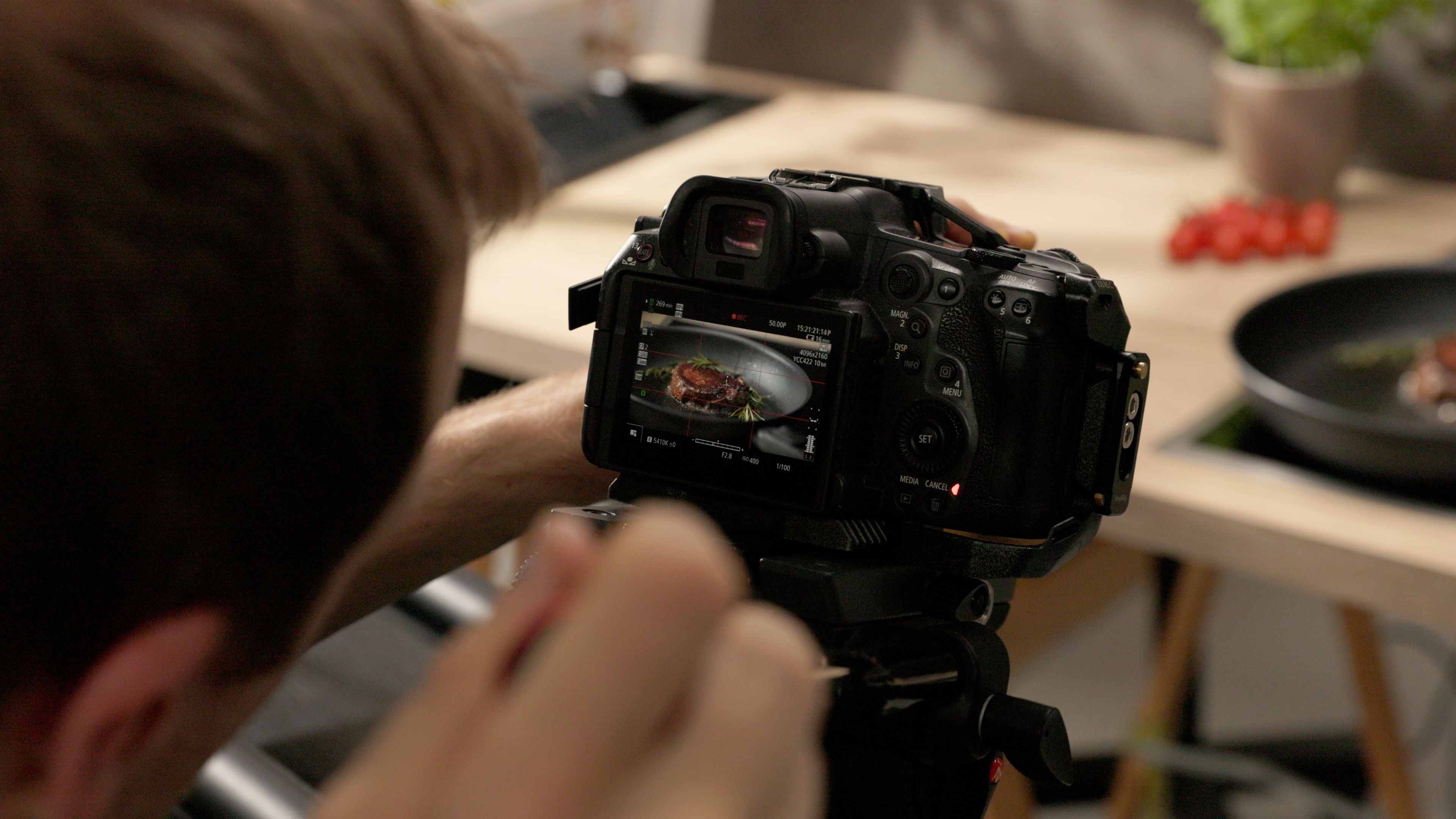 ⇒ für das Set haben wir in unserem Studio in Lage eine Küchenzeile nachgebaut. Die musste aber natürlich trotzdem die richtigen Kamerawinkel und eine geeignete Ausleuchtung zulassen.